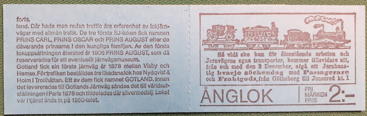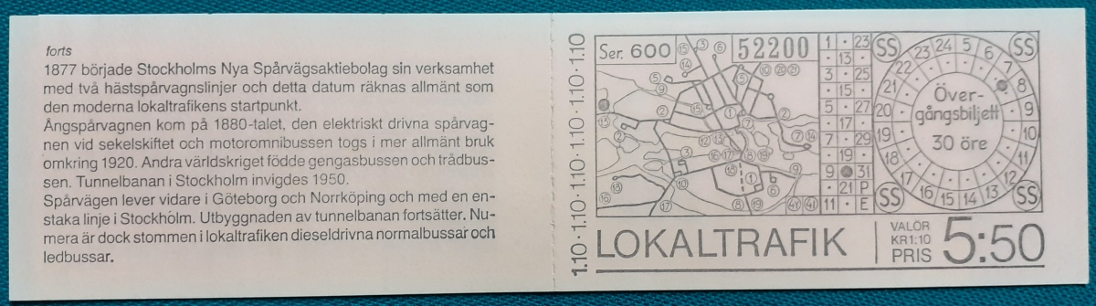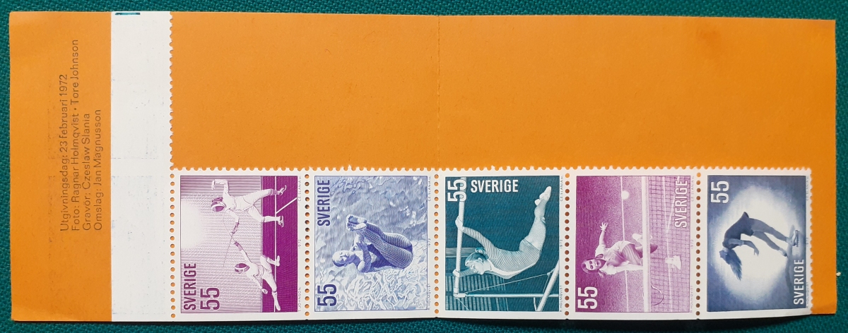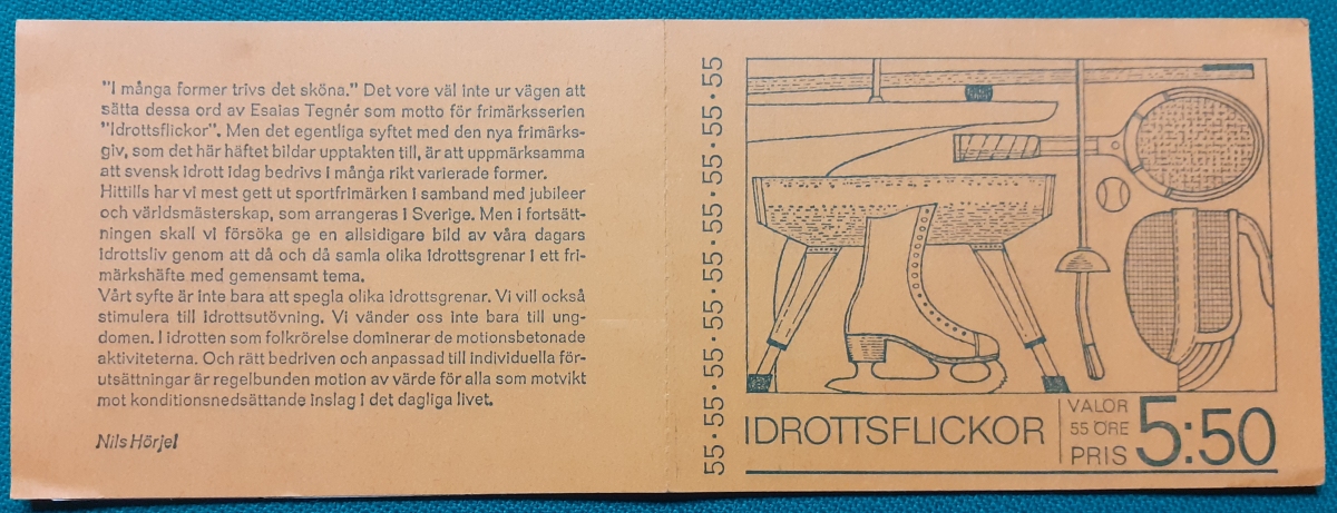Markenheftchen 5 Marken von ursprünglich 10 Marken zu je 55 Öre; postfrisch gummiert; ursprünglich 2 Sätze á 5 verschiedene Marken nebeneinander platziert; mit Informationen zur Heftchenausgabe auf Schwedisch; guter altersgemäßer Zustand Preis: 2 EURO |