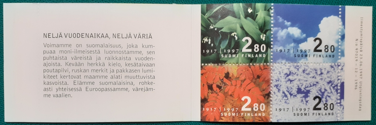 Markenheftchen Vollständig mit 4 Marken zu je 2.80 mk; postfrisch gummiert; mit Informationen zur Heftchenausgabe auf Finnisch und Schwedisch sehr guter altersgemäßer Zustand Preis: 5 EURO |
