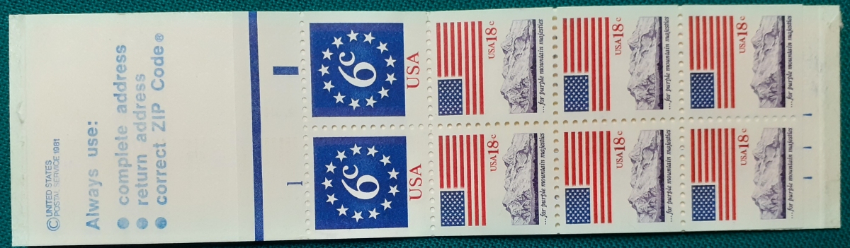 Michel Heftchen-Nr. 100 6 Marken zu je 18 US-Cent, zwei Marken zu je 6 US-Cent; Marken viermal dreiseitig und zweimal zweiseitig gezähnt; die Marke erschien auch aus Rollen (1522 C) und aus Bogen (1522A); postfrisch mit Trockengummi; sehr guter altersgemäßer Zustand Preis: 6 EURO |
