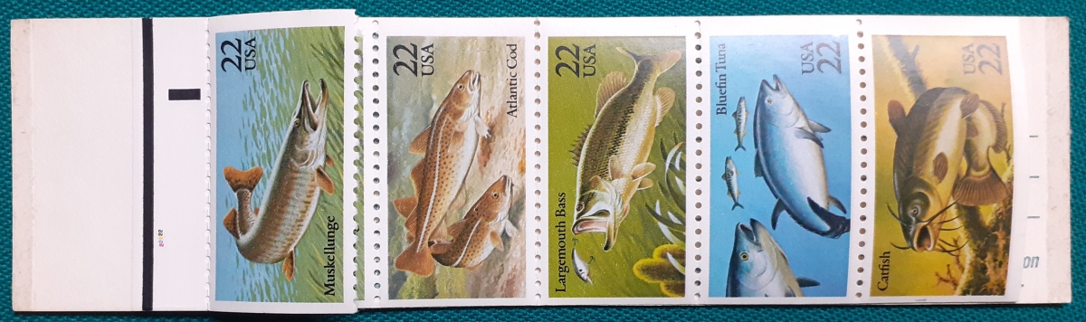 Markenheftchen 6 Marken von ursprünglich 10 Marken zu je 22 US-Cent; postfrisch gummiert; ursprünglich 2 Sätze á 5 verschiedene Marken voreinander platziert; ansonsten sehr guter altersgemäßer Zustand Preis: 2 EURO |