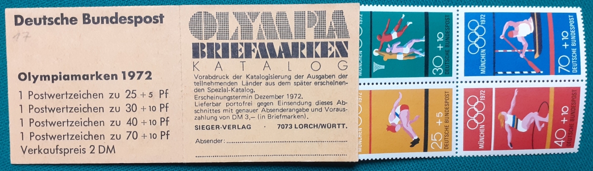Markenheftchen Michel-Nr. MH17 (mit Heftchenblatt: Post-Versandstellen für Sammlermarken); sehr guter altersgemäßer Zustand Preis: 19 EURO |