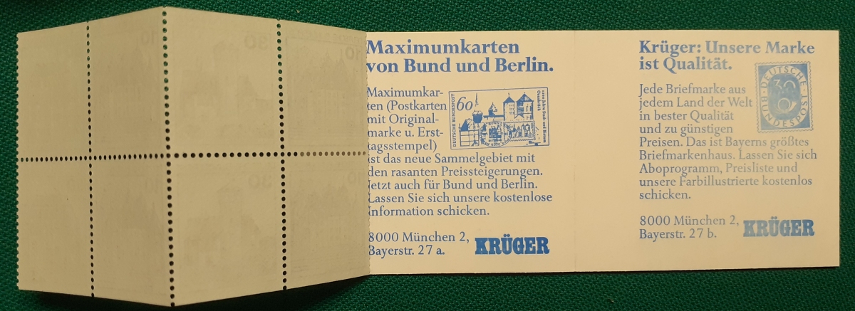 Markenheftchen Michel-Nr. MH22g; (mit Heftchenblatt: Krüger - Maximumkarten); sehr guter altersgemäßer Zustand Preis: 5 EURO |