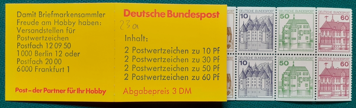 Markenheftchen Michel-Nr. MH23a; (mit Heftchenblatt: Borek - Marken als Kapitalanlage); sehr guter altersgemäßer Zustand Preis: 5 EURO |
