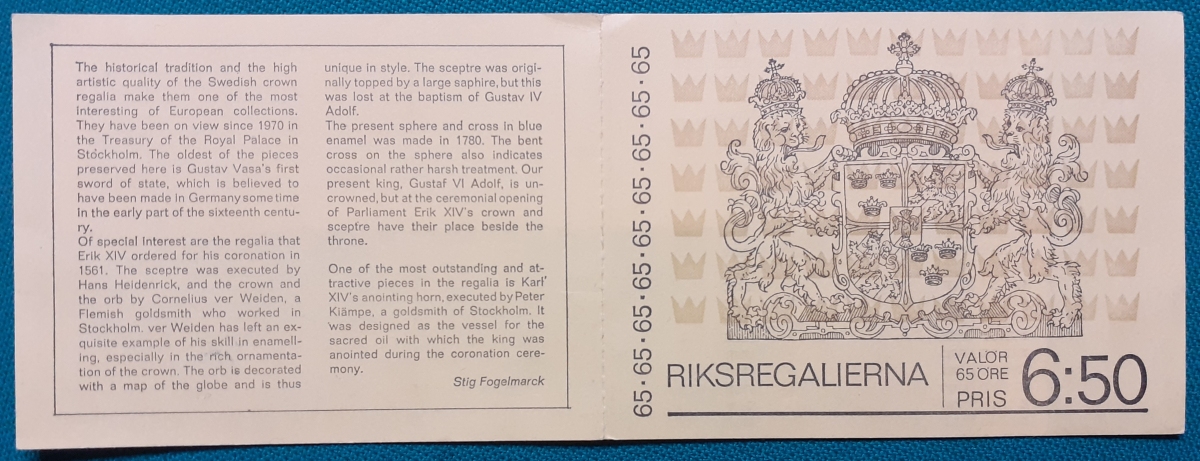 Markenheftchen 6 Marken zu je 1,30 Kronen; postfrisch gummiert; mit Informationen zur Heftchenausgabe auf Schwedisch; guter altersgemäßer Zustand Preis: 6 EURO |