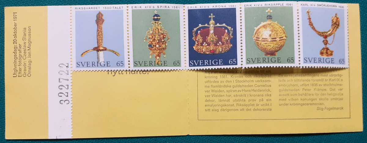 Markenheftchen 5 Marken - kompletter Satz mit je 1,10 Kronen; postfrisch gummiert; mit Informationen zur Heftchenausgabe auf Schwedisch; guter altersgemäßer Zustand Preis: 6 EURO |