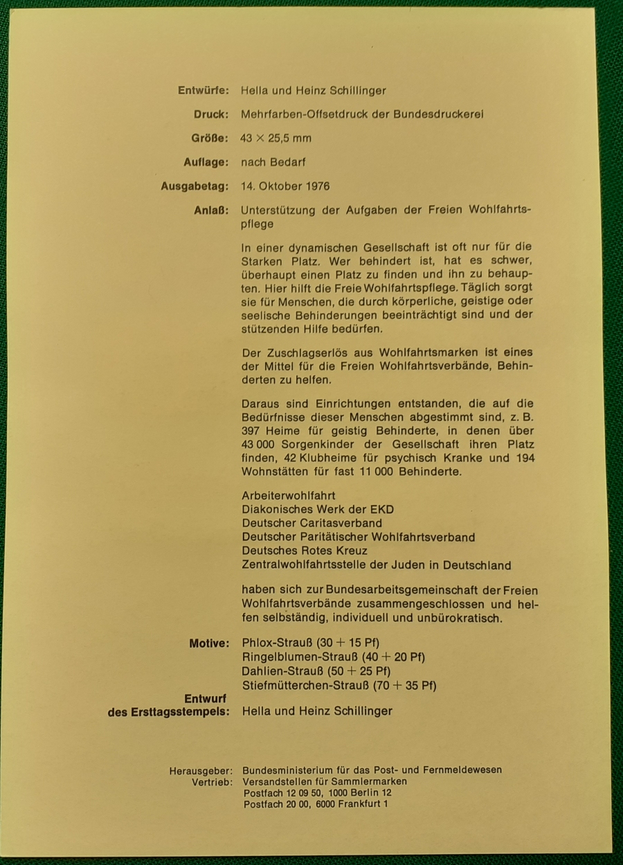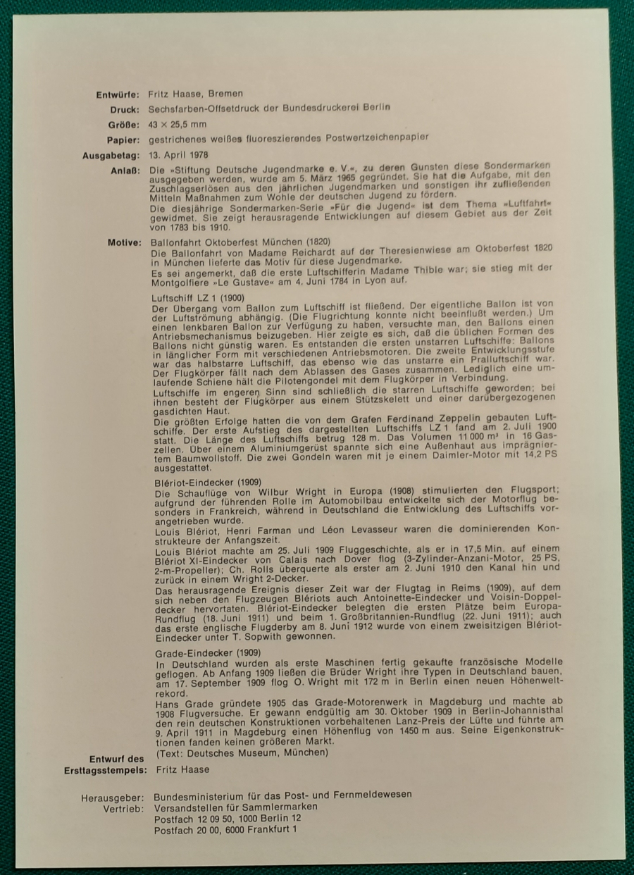 Ersttagsstempel, auf der Rückseite Angaben zum Entwurf,
