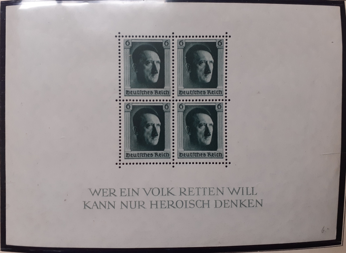 Block Michel-Block-Nr. 7 148 x 105 mm; postfrisch gummiert; sehr guter altersgemäßer Zustand Preis: 49 EURO Anmerkung Heinsohn: Es handelt sich um nationalsozialistische Propaganda; die Darstellung hier hat rein dokumentarischen Charakter und wird nur zu historisch-wissenschaftlichen Forschungszwecken abgegeben (gegen entsprechenden Nachweis) |