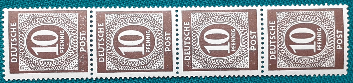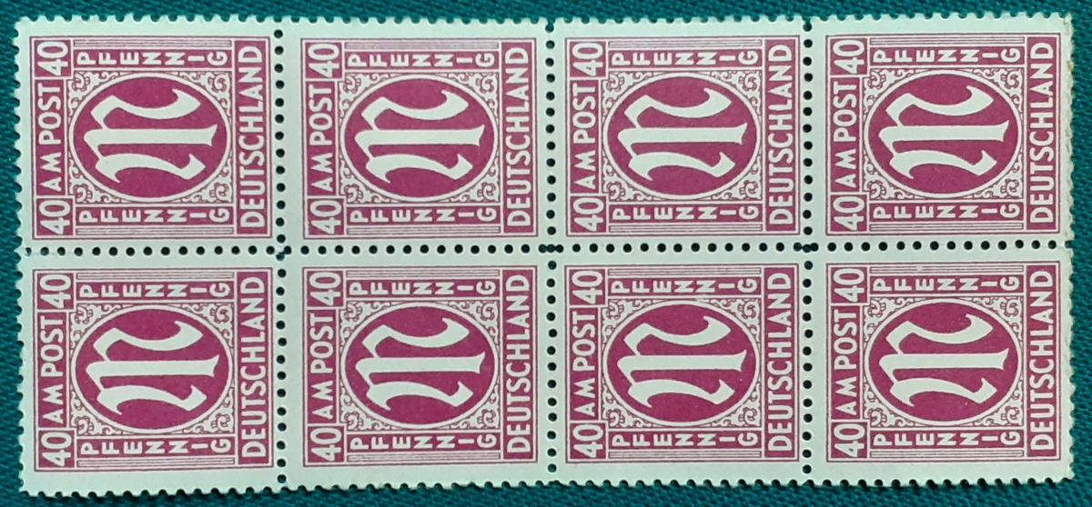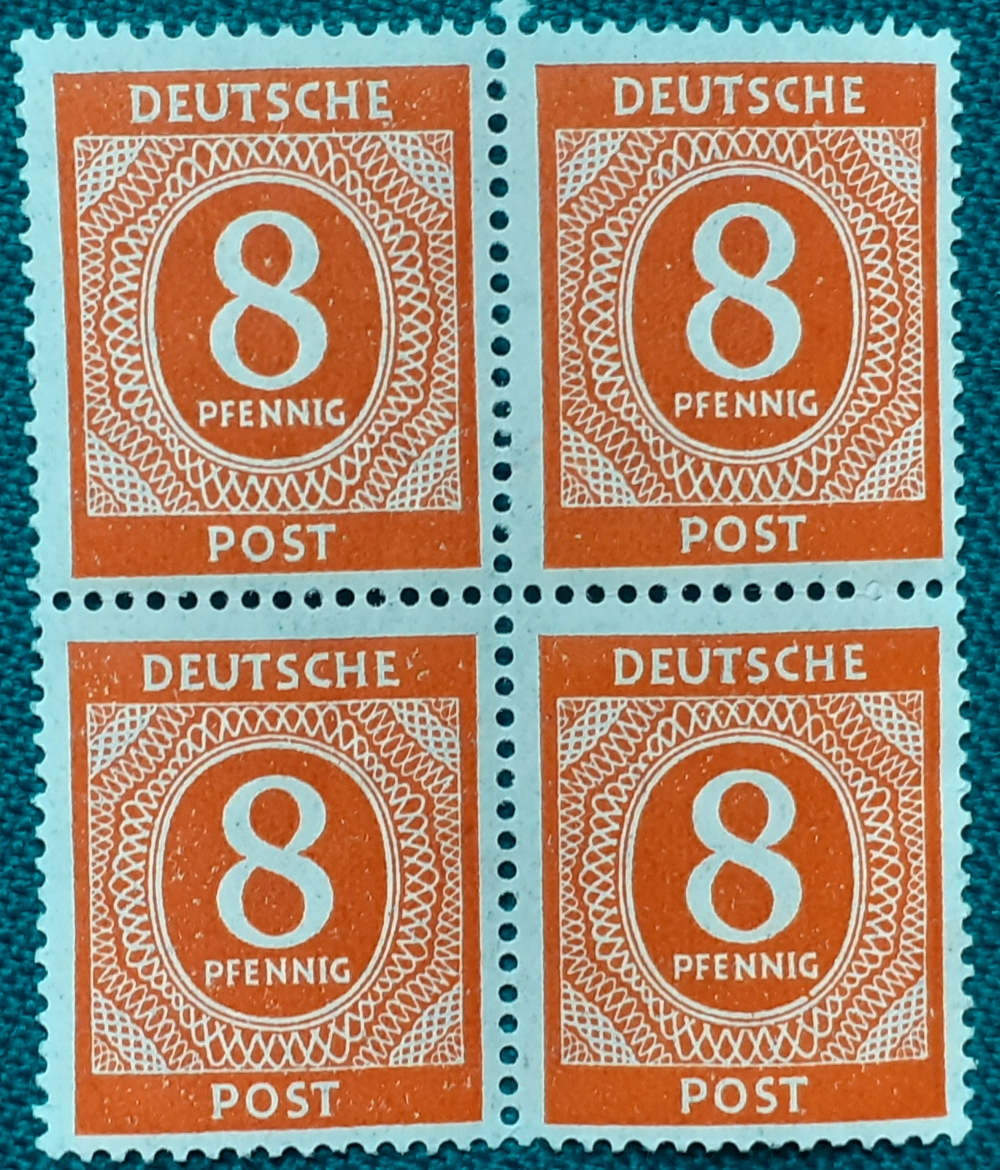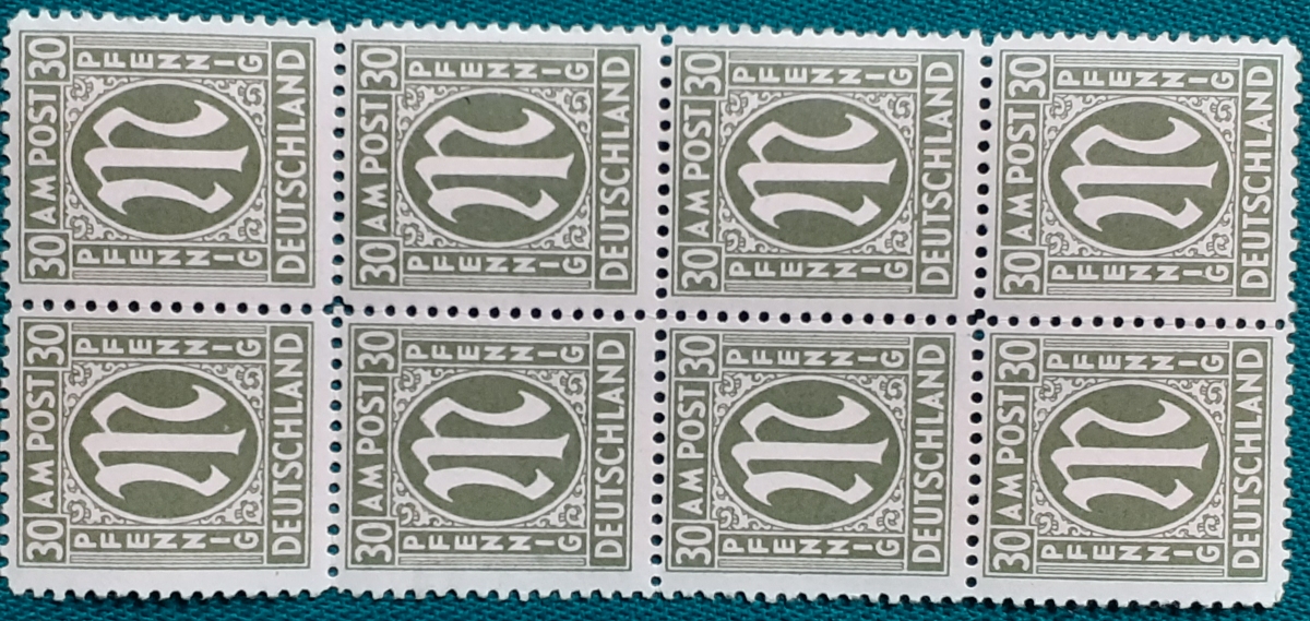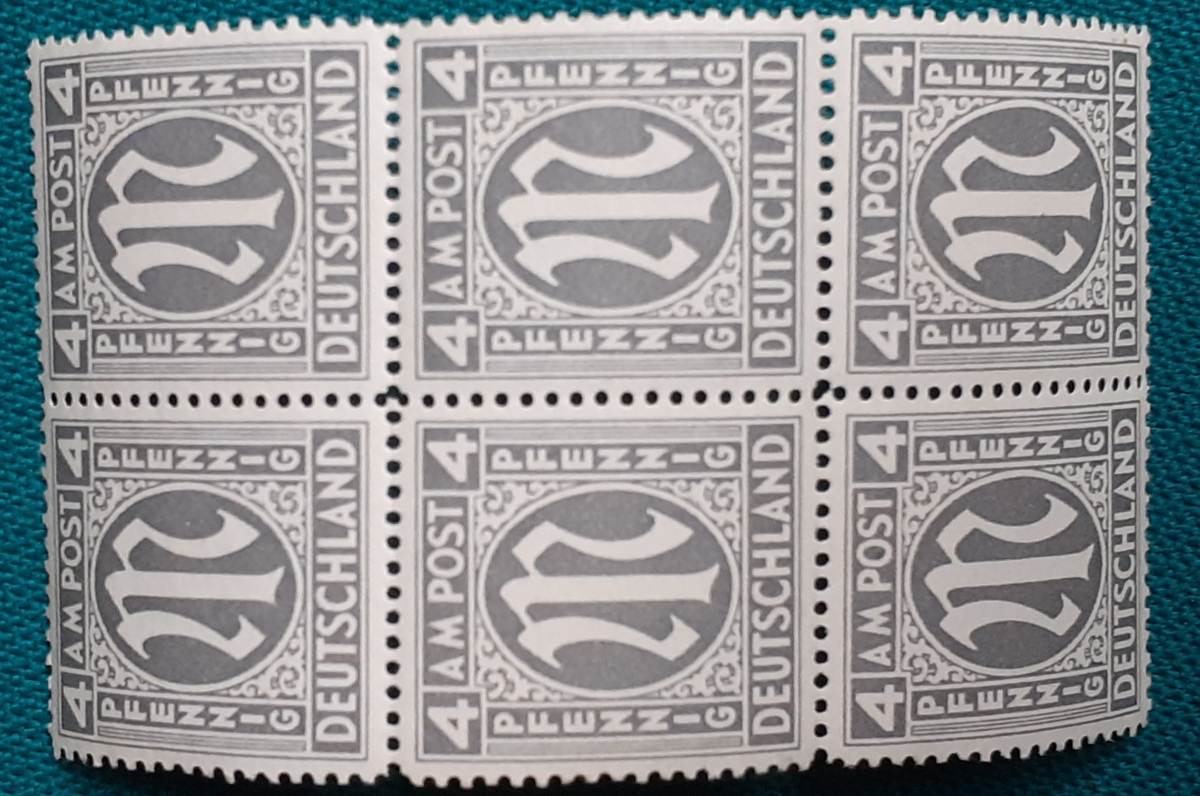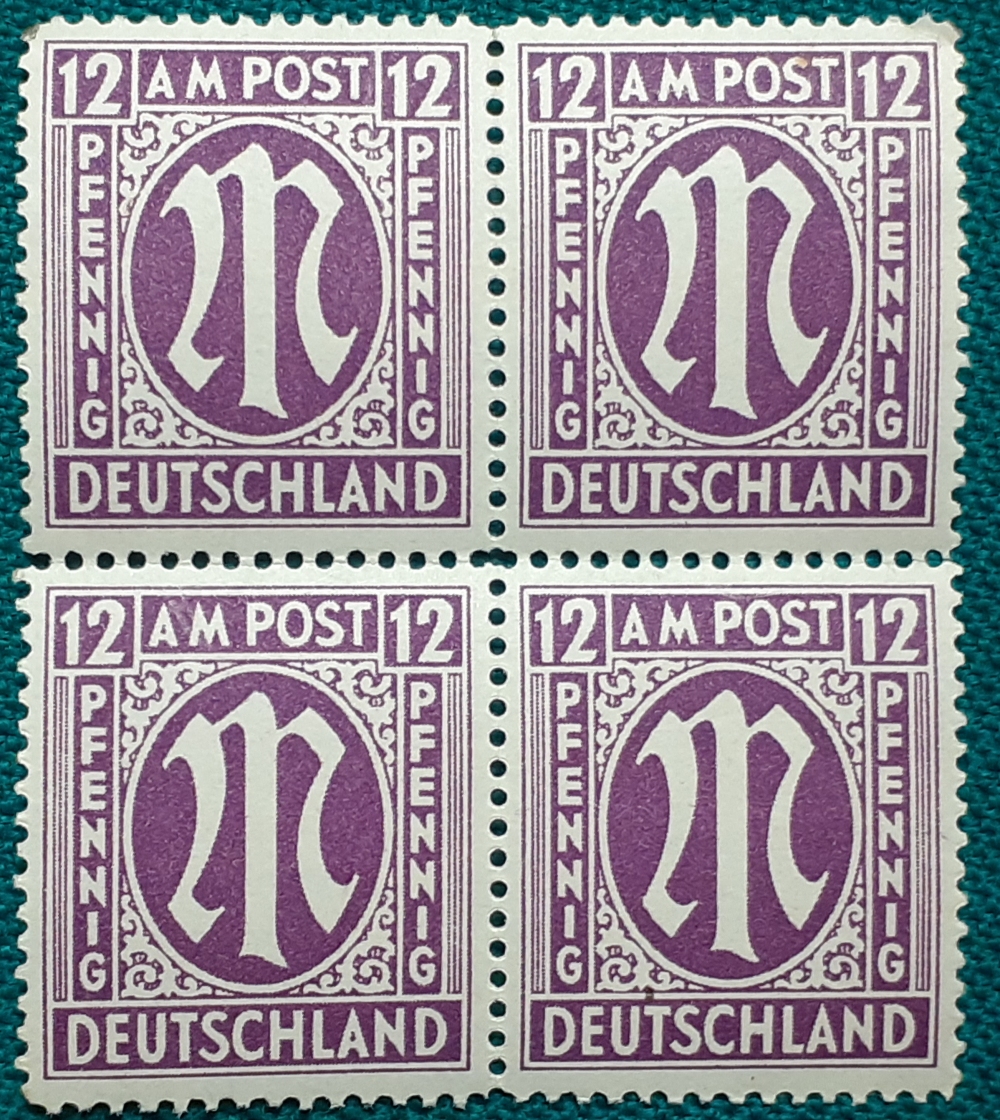 Nach Beendigung des 2. Weltkrieges wurde Deutschland in 4 Besatzungszonen geteilt. Im Osten (spätere DDR) die sowjetische Zone, im Norden die britische Zone, im Süden die amerikanische Zone und im Südwesten die französische Zone. Nach anfänglichen Gemeinschaftsausgaben (bis auf französische Zone), gab es bald eigene Briefmarken in der sowjetischen Zone (SBZ), eigene Briefmarken in der französischen Zone und gemeinsame Briefmarken in der amerikanischen und britischen Zone (Bizone).