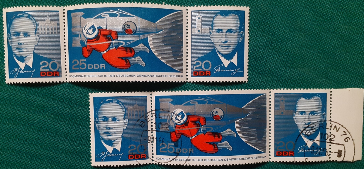 Michel-Nr. 1138 bis 1140 Zusammendruck; postfrisch gummiert und gestempelt (schöne Rundstempel: Berlin 9.11.1966); beide Zusammendrucke in gutem altersgemäßen Zustand Komplettpreis: 6 EURO |