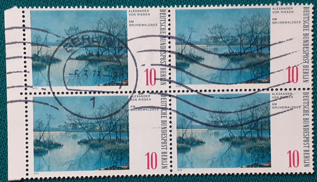 Viererblock vom Bogen: Michel-Nr. 423 Rundstempel Berlin vom 6.3.1973; recht guter altersgemäßer Zustand Preis: 1 EURO |