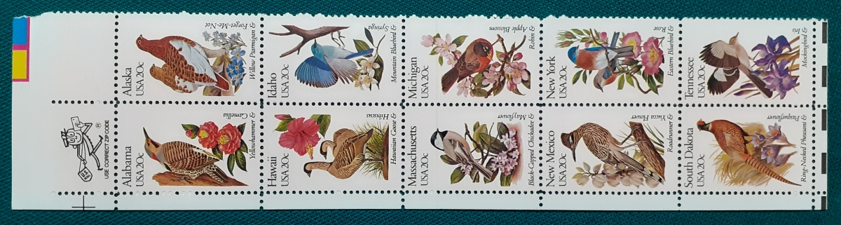 Vögel der 50 Bundesstaaten der USAs postfrisch gummiert; 10 Marken zu je 20 US-Cent von 1982; mit Mr. ZIP am Bogenrand; sehr guter Zustand Preis: 5 EURO |