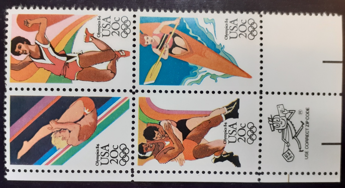 in Los Angeles postfrisch gummiert; 4 Marken zu je 20 US-Cent von 1984; mit Mr. ZIP am Bogenrand; sehr guter altersgemäßer Zustand Preis: 5 EURO |