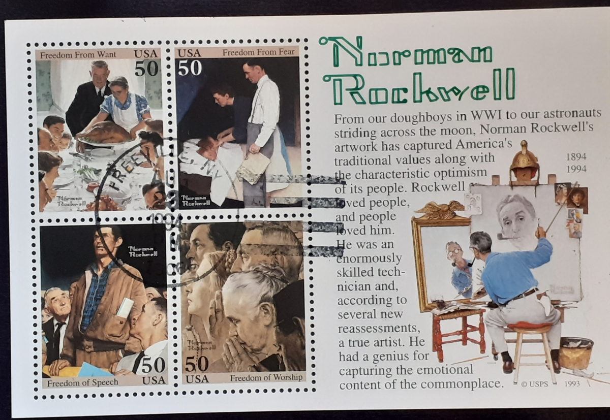 Block gestempelt mit schönem Rundstempel in Freeville (N.Y.) vom 23. August 1994; 4 Marken (vollständige Reihe) zu je 50 US-Cent von 1994; Blockgröße 14 x 9 cm; sehr guter altersgemäßer Zustand Preis: 4 EURO |