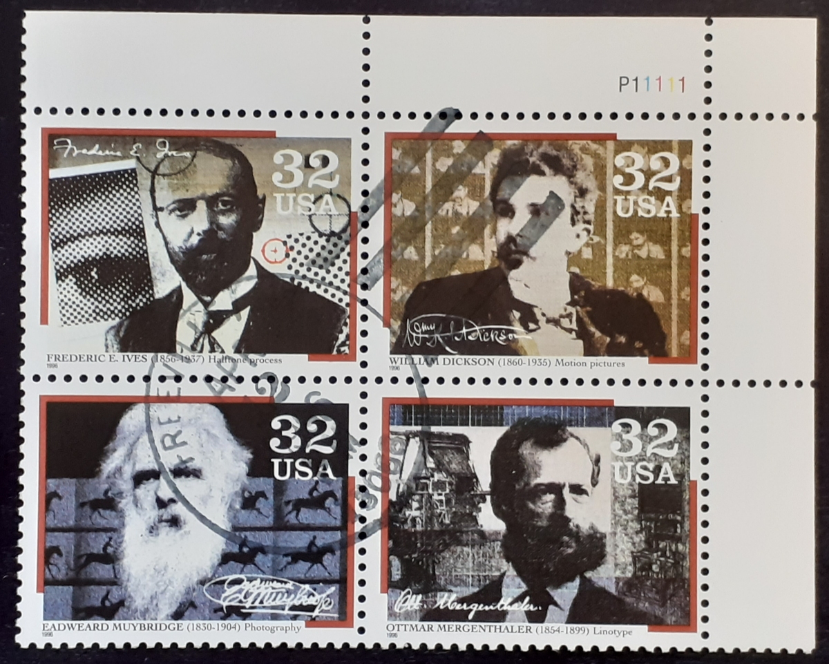 "Pioniere der Kommunikation" gestempelt mit schönem Rundstempel in Freeville (N.Y.); 4 Marken (vollständige Reihe) zu je 32 US-Cent von 1996; sehr guter altersgemäßer Zustand Preis: 3 EURO |