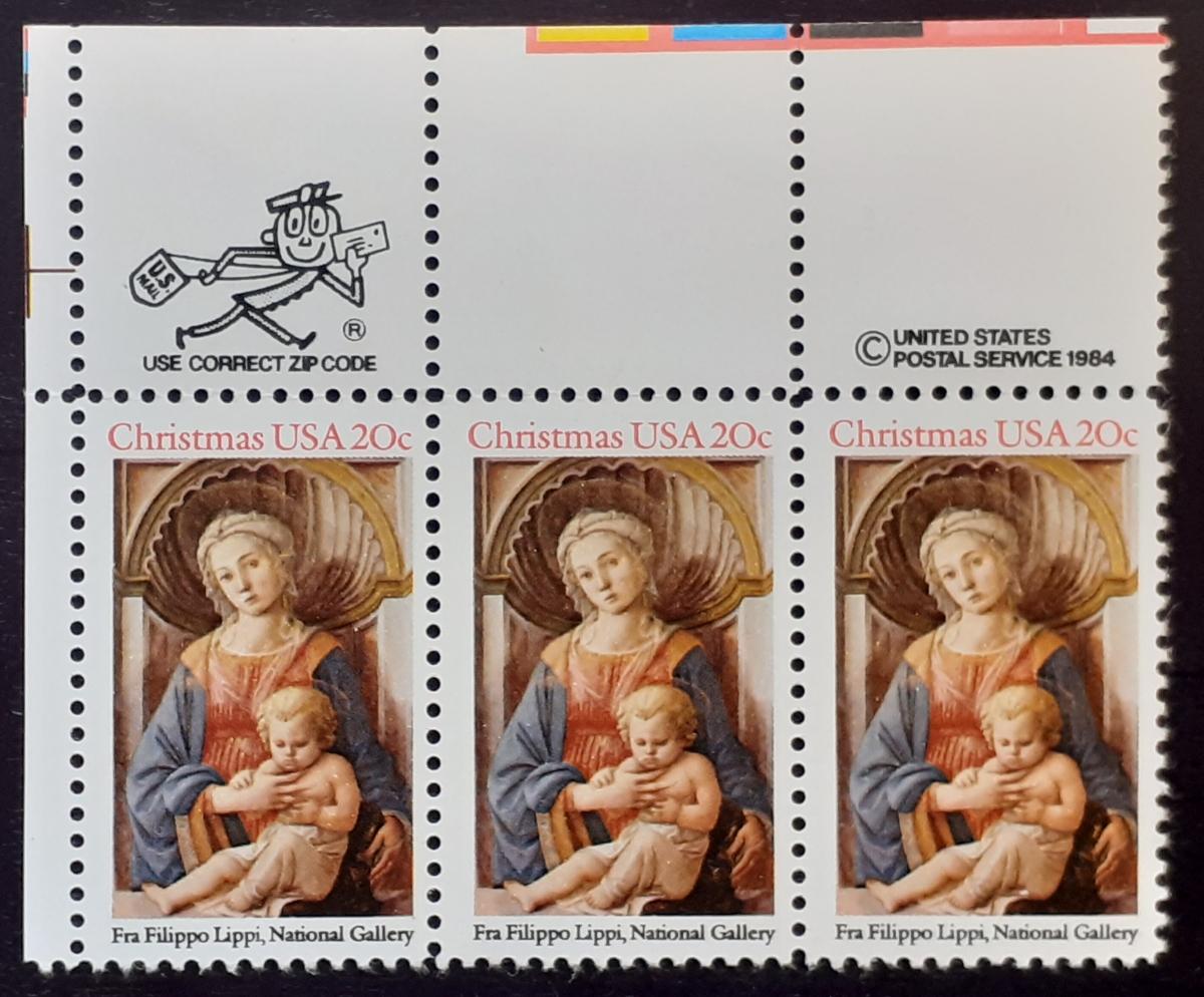 Weihnachtsmarke 1984: postfrisch gummiert; drei Marken zu je 20 US-Cent; am 30.10.1984 herausgegeben; mit Mr. ZIP und Copyright US Post am Bogenrand; sehr guter altersgemäßer Zustand Preis: 3 EURO |