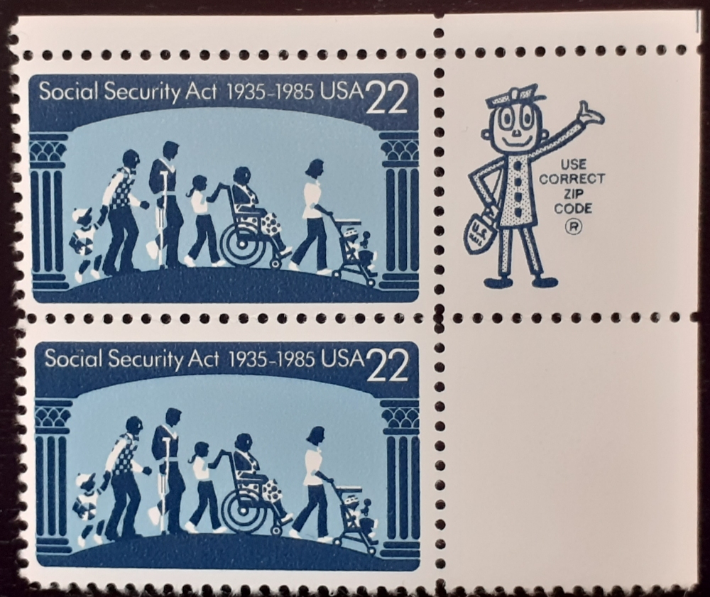 50 Jahre Social Security Act 1935 - 1985 postfrisch gummiert; zwei Marken zu 22 US-Cent; 1985 herausgegeben; mit Mr. ZIP am Bogenrand; sehr guter altersgemäßer Zustand Preis: 3 EURO |
