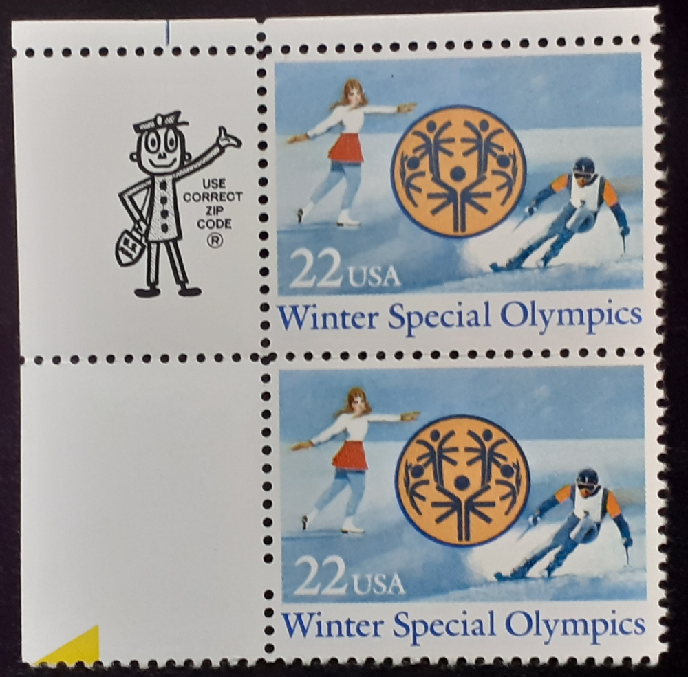 Winter Special Olympics postfrisch gummiert; zwei Marken zu 22 US-Cent; die Briefmarke erschien am 25. März 1985; mit Mr. ZIP am Bogenrand; sehr guter altersgemäßer Zustand Preis: 3 EURO |