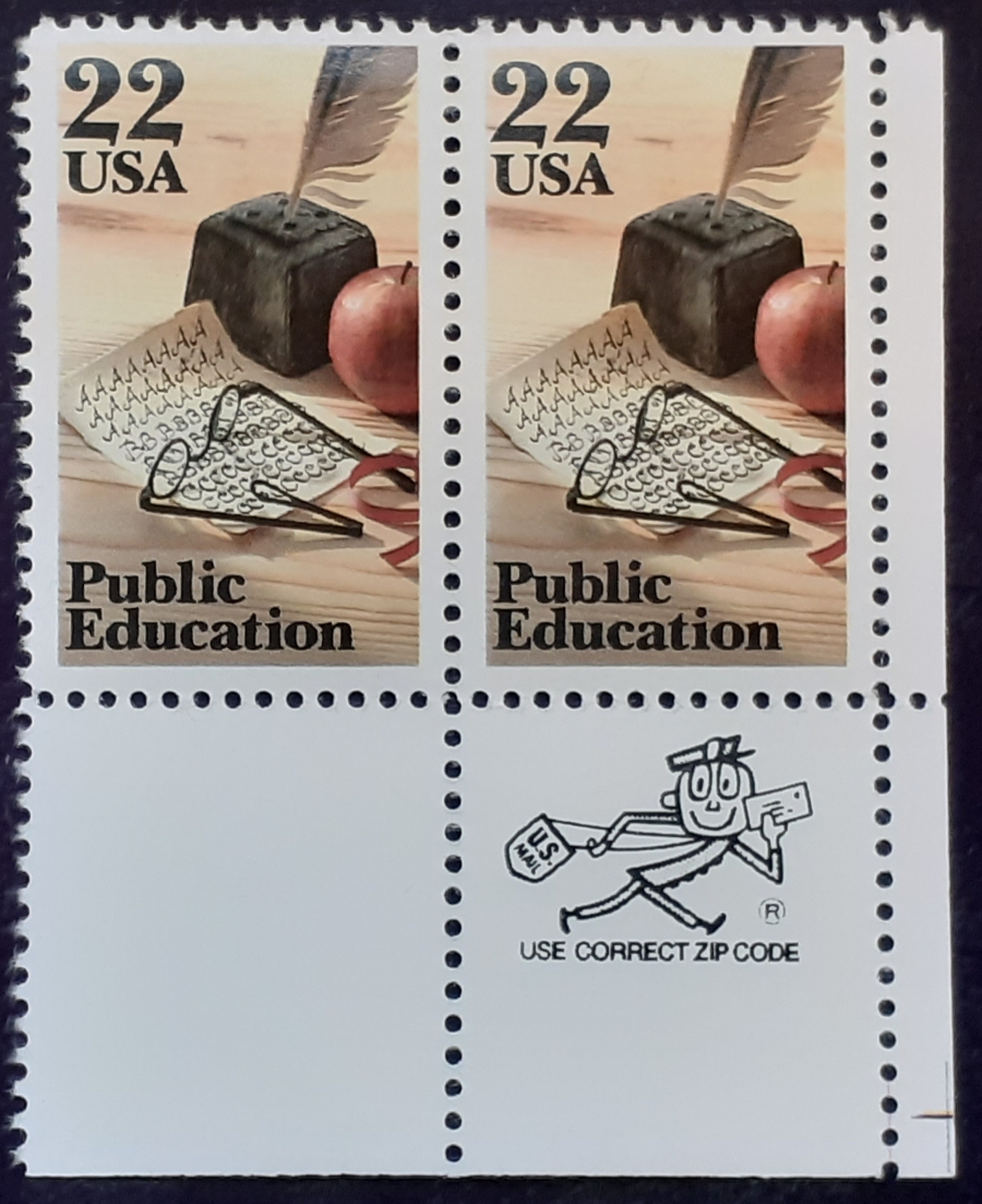 Public Education postfrisch gummiert; zwei Marken zu 22 US-Cent; die Briefmarke erschien am 1.10.1985; mit Mr. ZIP am Bogenrand; sehr guter altersgemäßer Zustand Preis: 3 EURO |