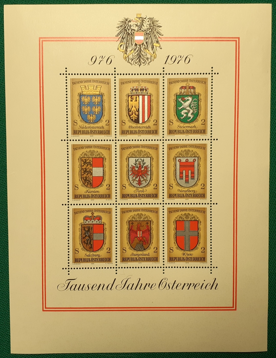 Briefmarkenblock: postfrisch gummiert; 18 x 14cm; mit 6 verschiedenen Werten; sehr guter altersgemäßer Zustand Preis: 8 EURO |