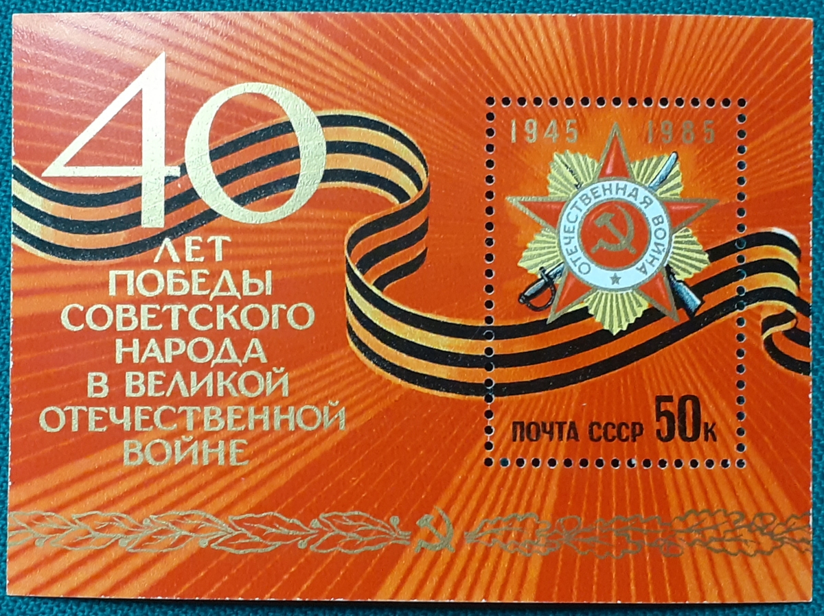 "40 Jahre Kriegsende 1945-1985" postfrisch gummiert; 50 Kop. im Block; ca. 9 x 6 cm; sehr guter altersgemäßer Zustand Preis: 2 EURO |