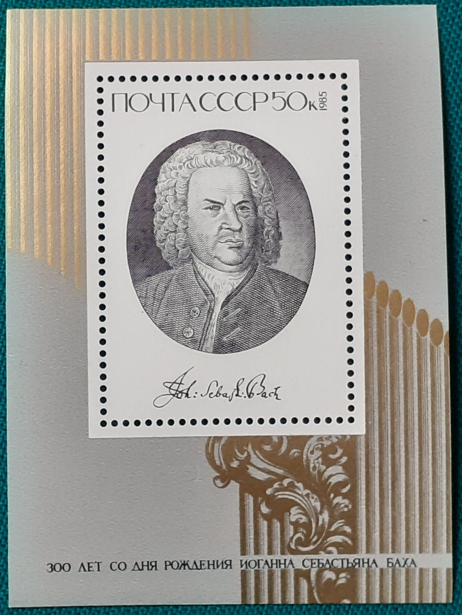 "300 Jahre Sebastian Bach" postfrisch gummiert; 50 Kop. im Block; ca. 9 x 6 cm; sehr guter altersgemäßer Zustand Preis: 2 EURO |