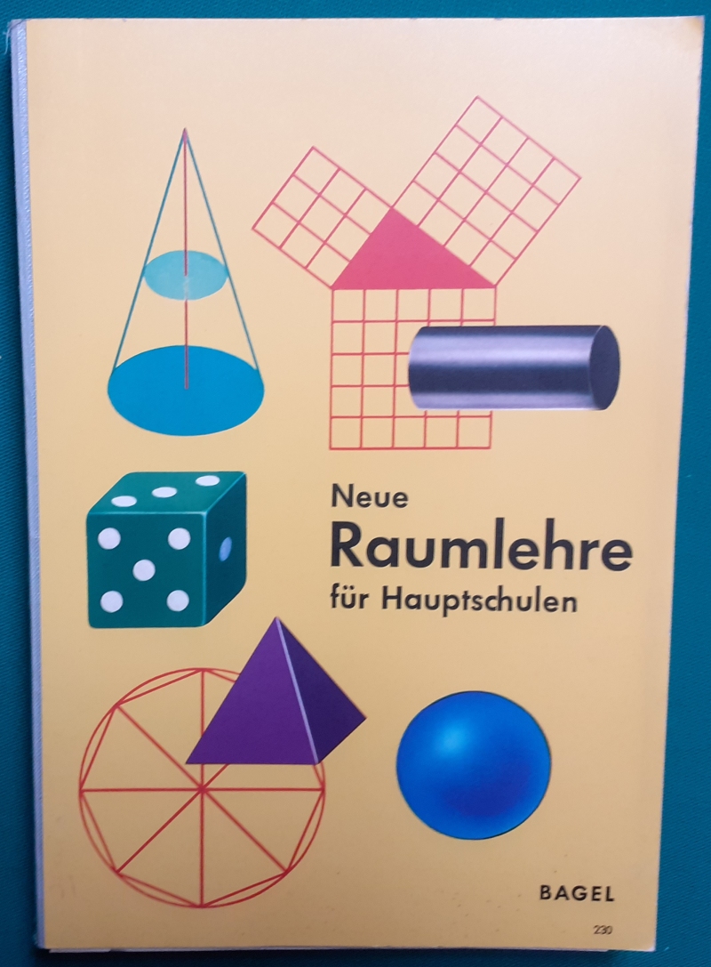 Neue Raumlehre für Hauptschulen Hrsg. Willy K. Cordt u.a.; Bagel Verlag Düsseldorf, Ausgabe von 1967, 108 Seiten, Leinenband am Rücken mit lackiertem festen Pappeinband; vorn innen Schulstempel; sauber und gepflegt; offenbar kaum benutzt; sehr guter altersgemäßer Zustand