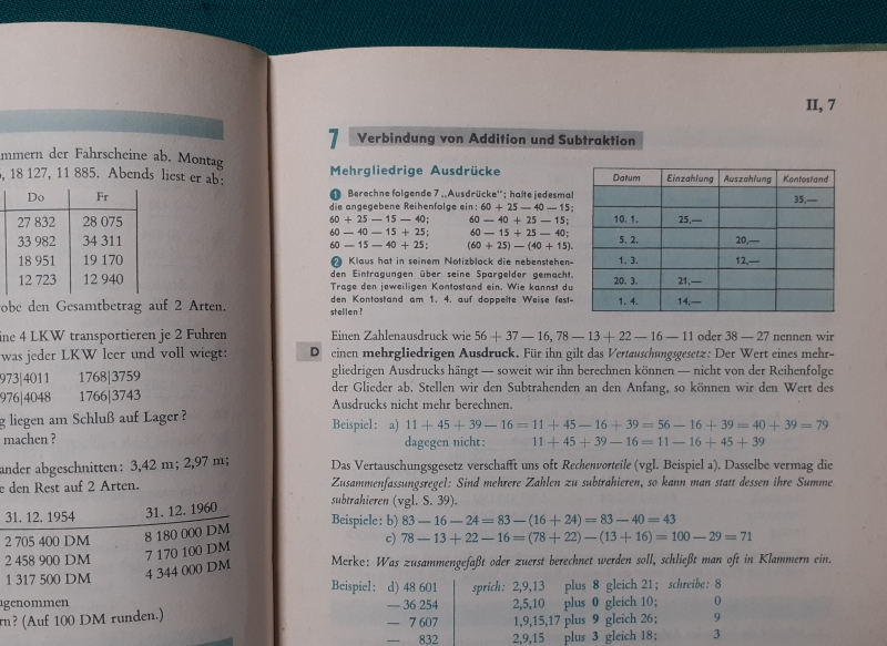 Die Rechenarten erster Stufe, Addition und Subtraktion; -