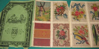 10 Seiten (beidseitig bedruckt) und 40 Mustern ; Höhe des Leporellos ca. 16