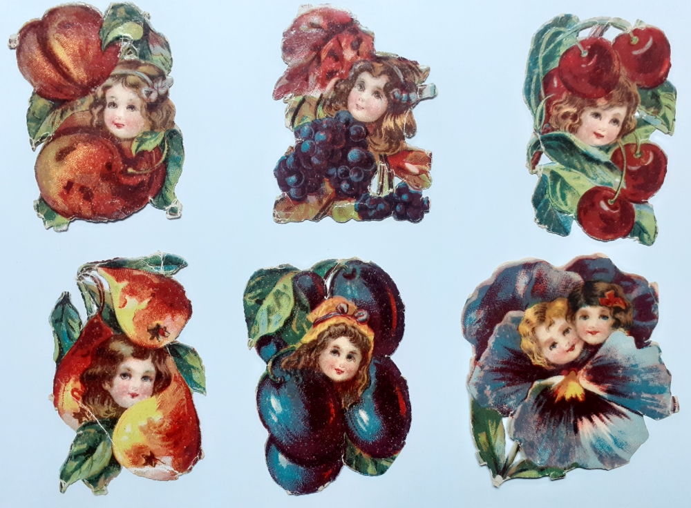 Art-Nr. ob18a; Preis: 3 EURO für 6 Stück Sechs Kinder und Früchte