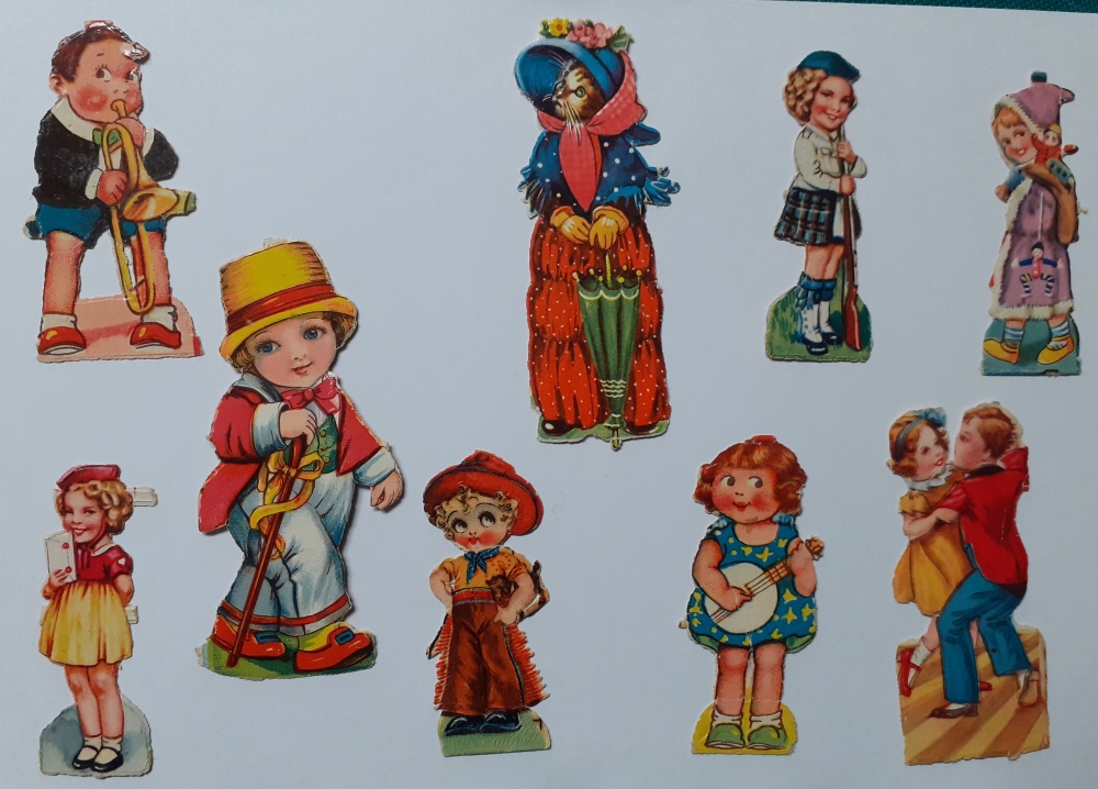 Art-Nr. ob22a, Preis: 4 EURO für 9 Stück Neun Oblaten mit Kindermotiven + 1 Katze