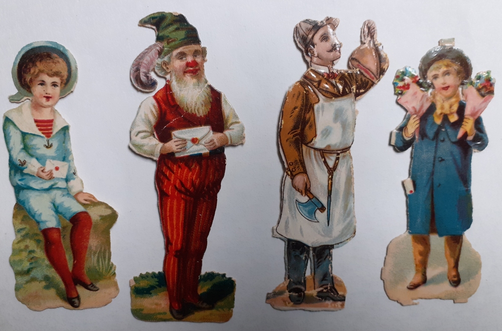 Art-Nr. ob24a, Preis: 7 EURO für 4 Stück Vier Figuren: 2 Kinder, Zwerg, Fleischer