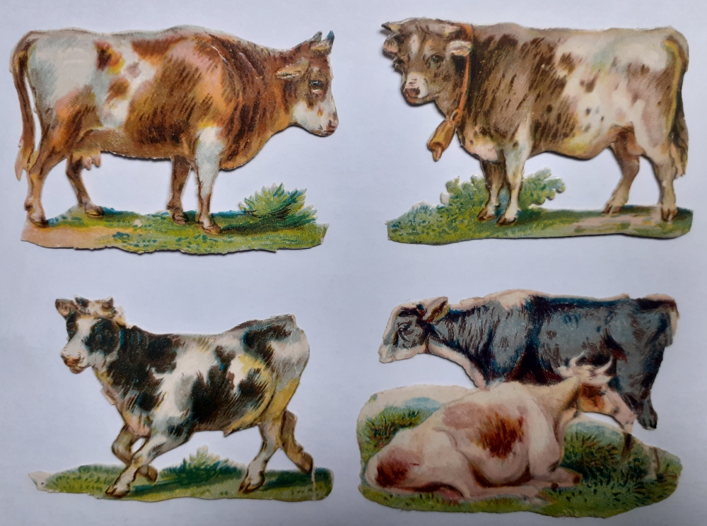 Art-Nr. ob36a, Preis: 6 EURO für 4 Stück Vier Motive Rinder
