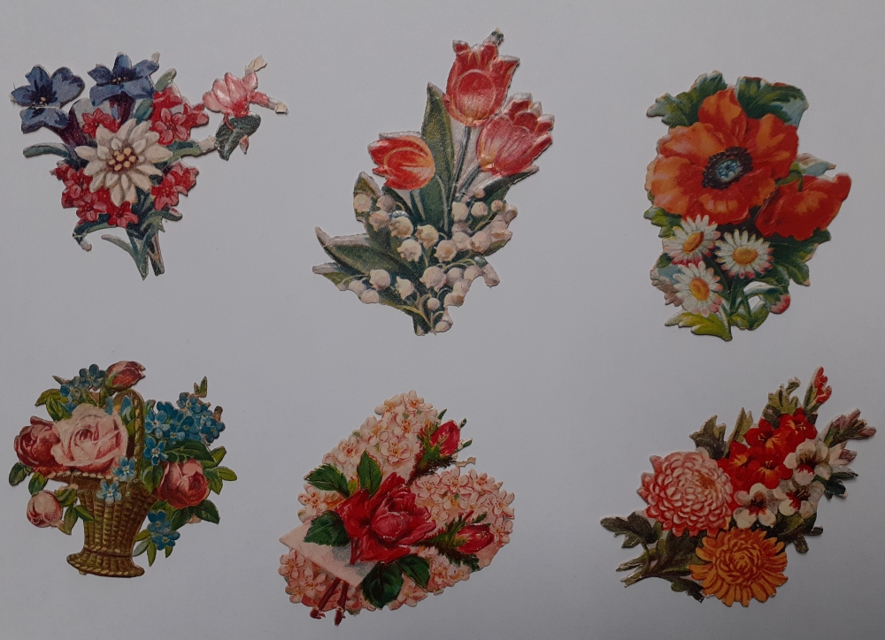Art-Nr. ob14a, Preis: 5 EURO für 6 Stück 6 Blumenmotive