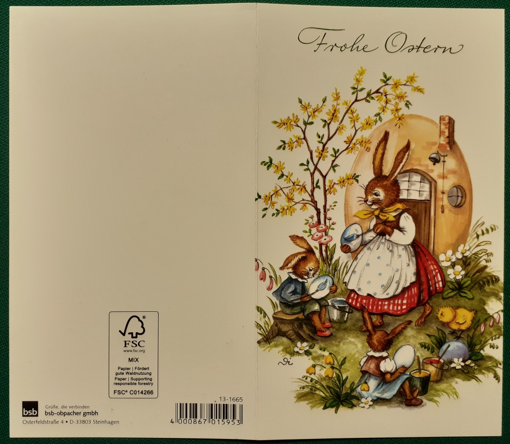 mit der Illustration von Oster-Klappkarte innen mit einem Glückwunsch beschrieben; sonst sehr guter altersgemäßer Zustand Preis: 1 EURO |