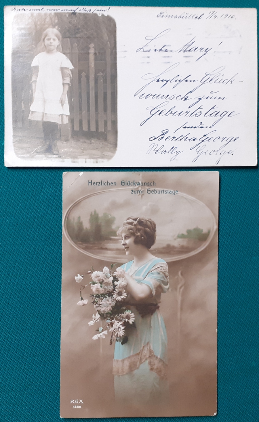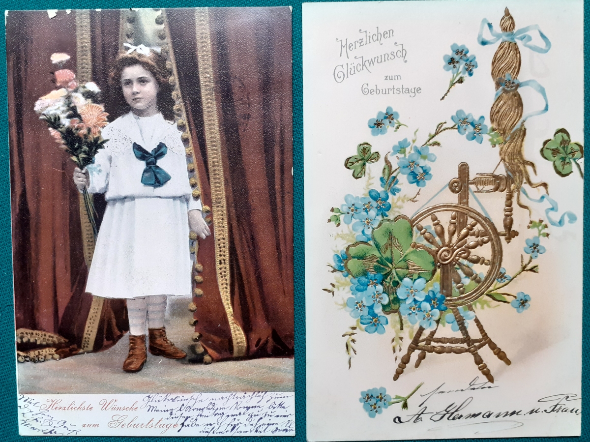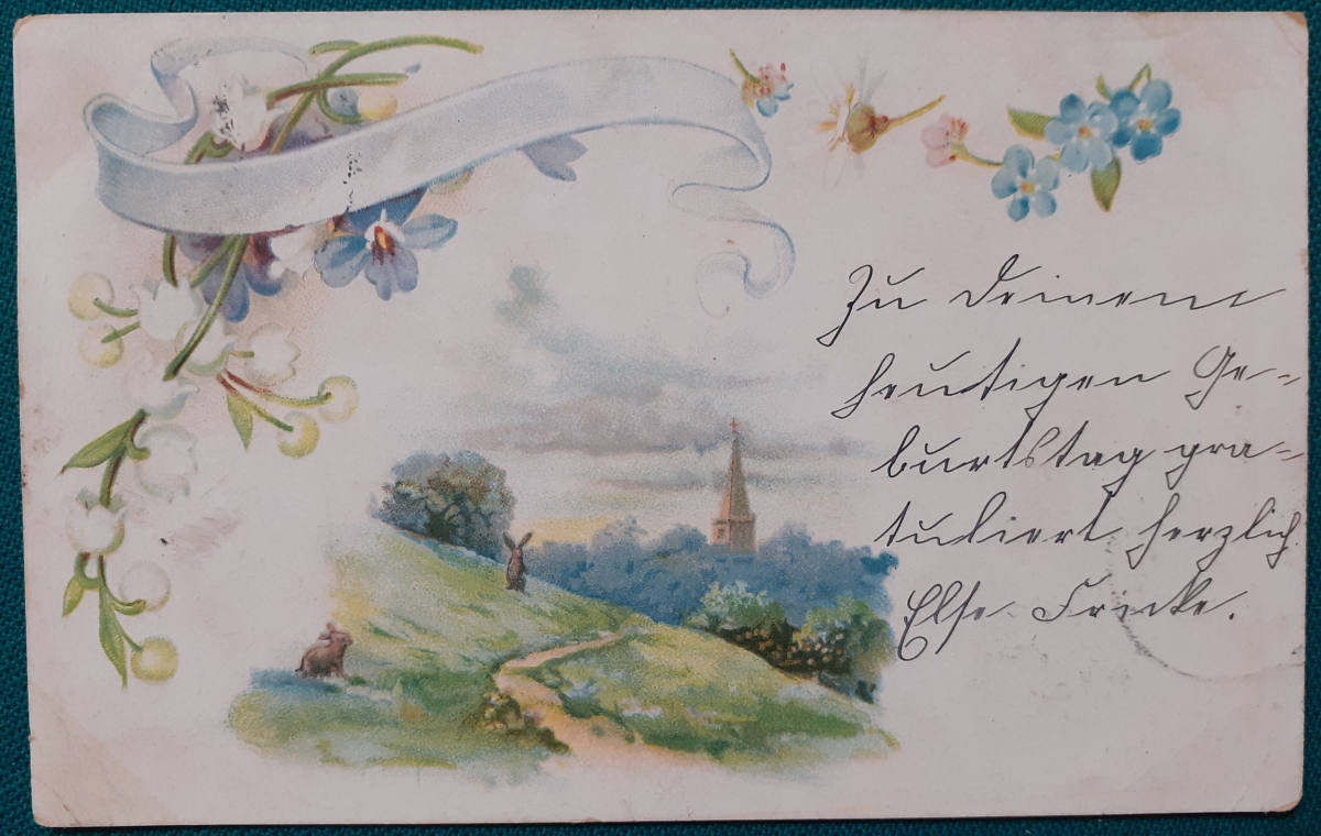 Glückwünsche auf der Vorderseite handschriftlich ganz unten (in Sütterlin in