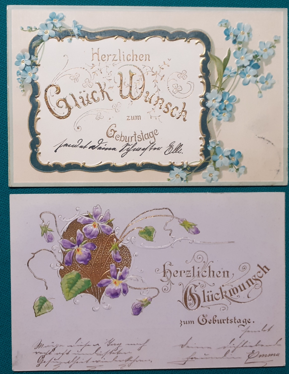 Glückwünsche auf der Vorderseite handschriftlich in sehr feiner