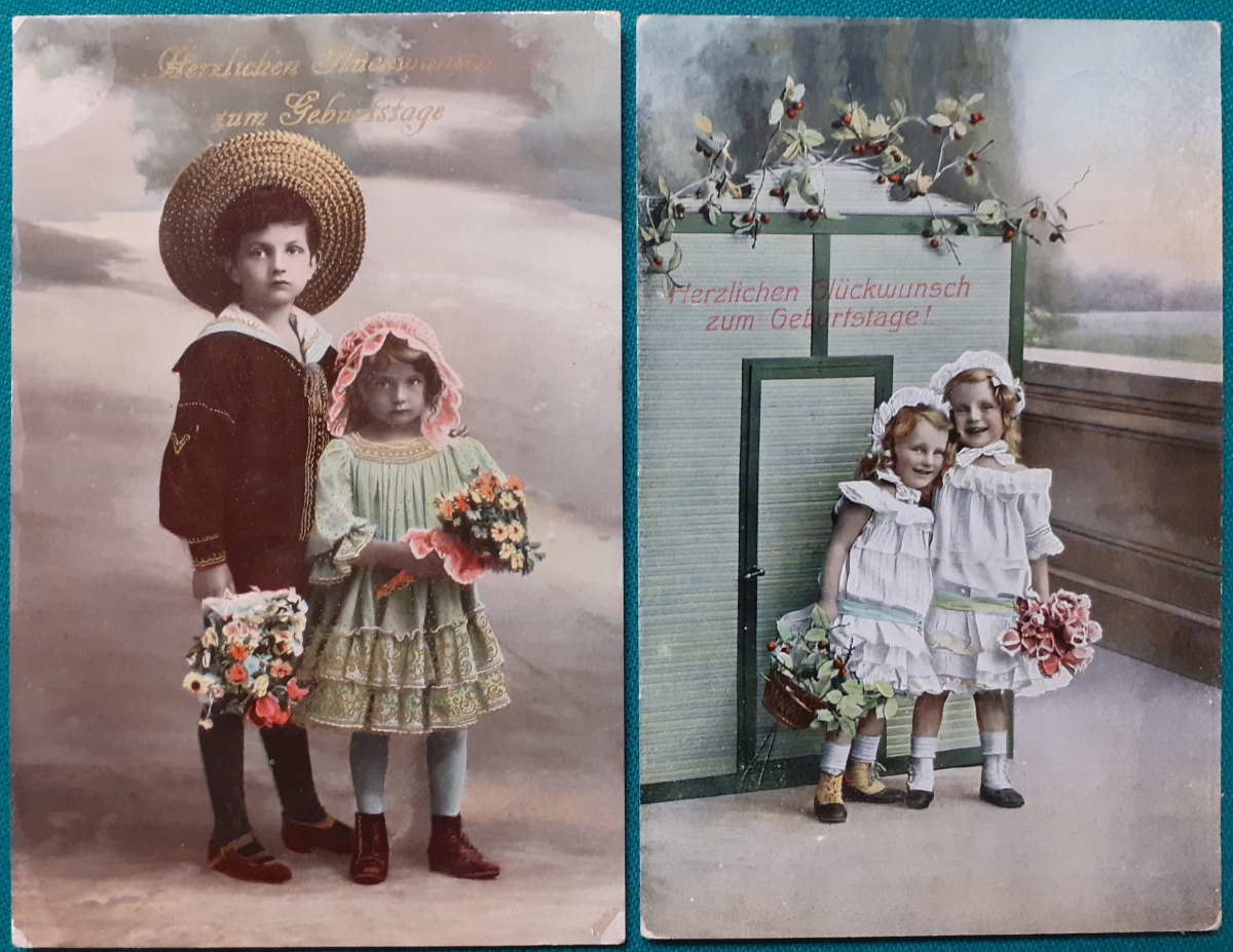 (Motiv Zwei kleine Mädchen mit Blumensträußen)