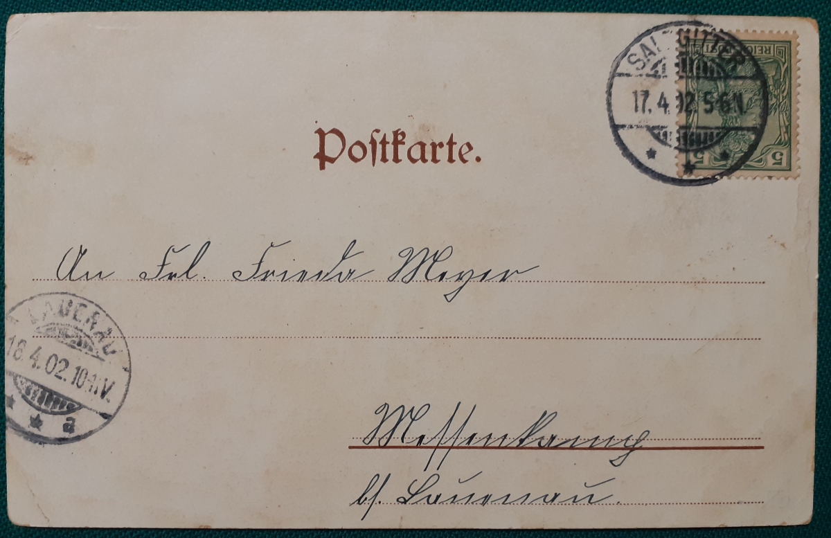 am 18.4.1902 von Lauenau nach Salzgitter mit Absende- und Empfangsstempel,