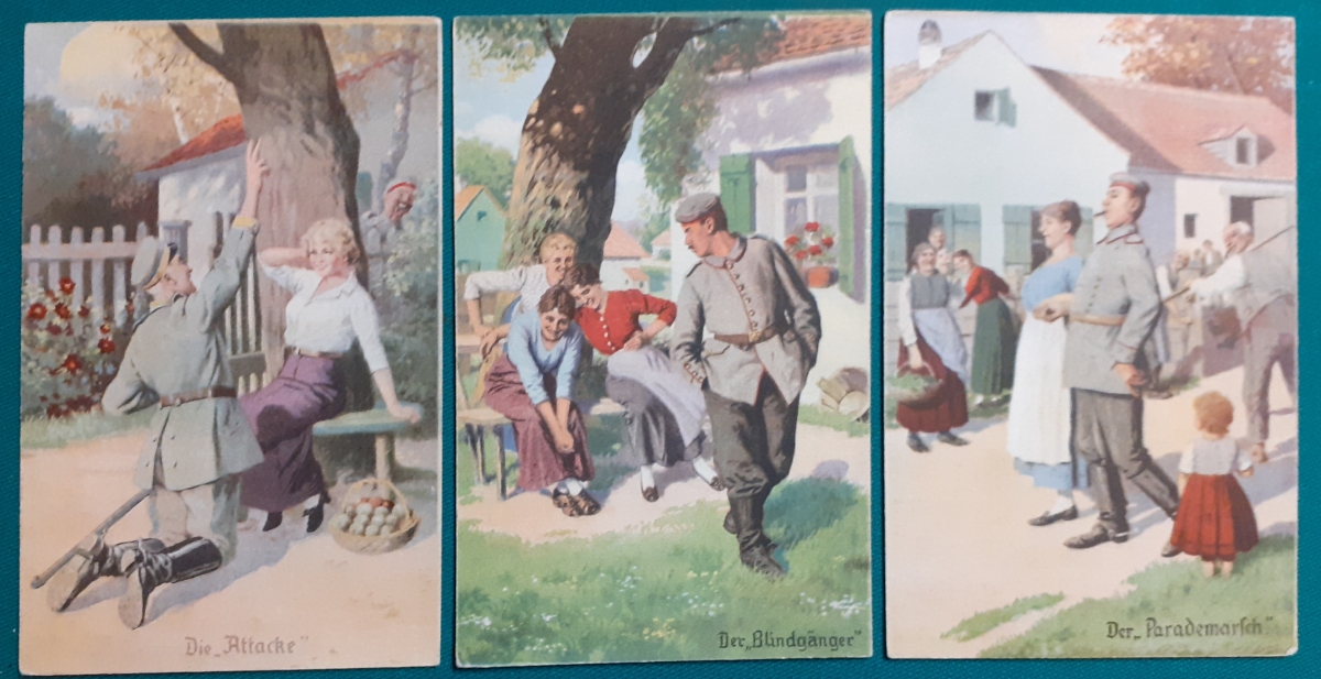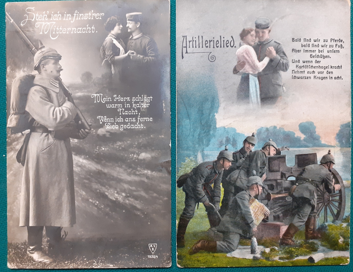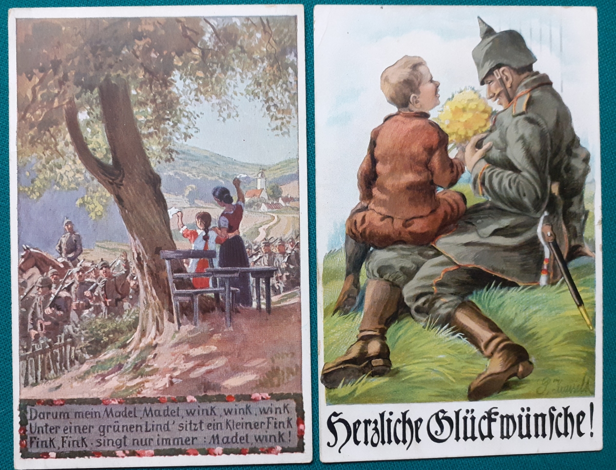 nicht gelaufen; Soldaten-Liederkarte von Paul Hey gezeichnet;