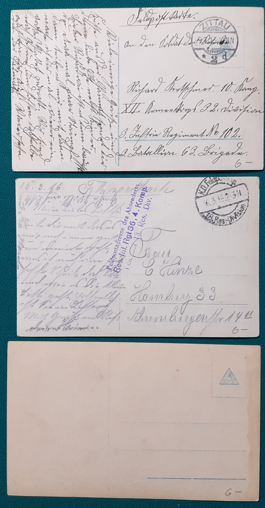 zugestellt am 9.2.1916 nach Hamburg, hervorragender Regimentsstempel und