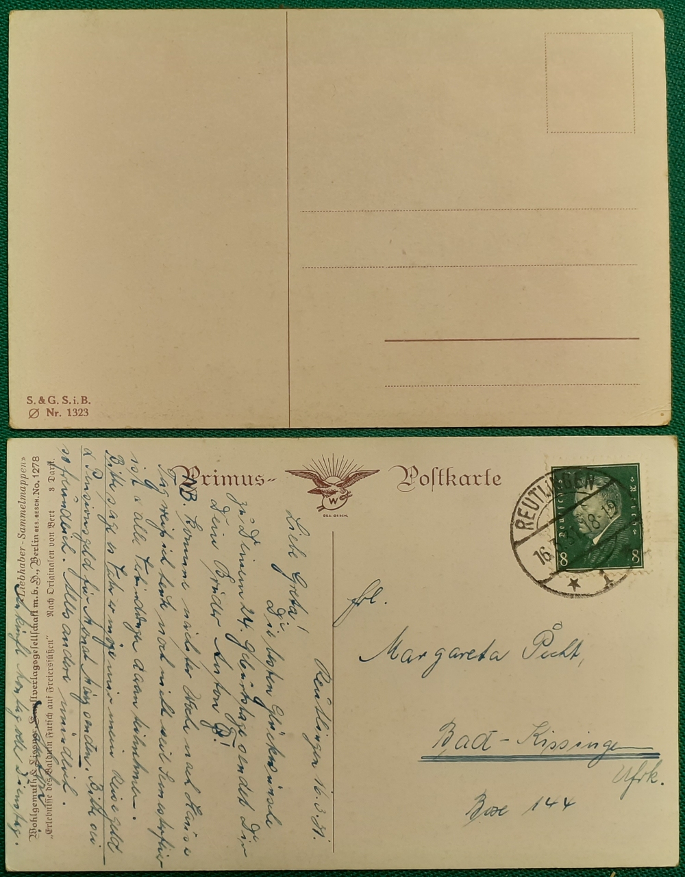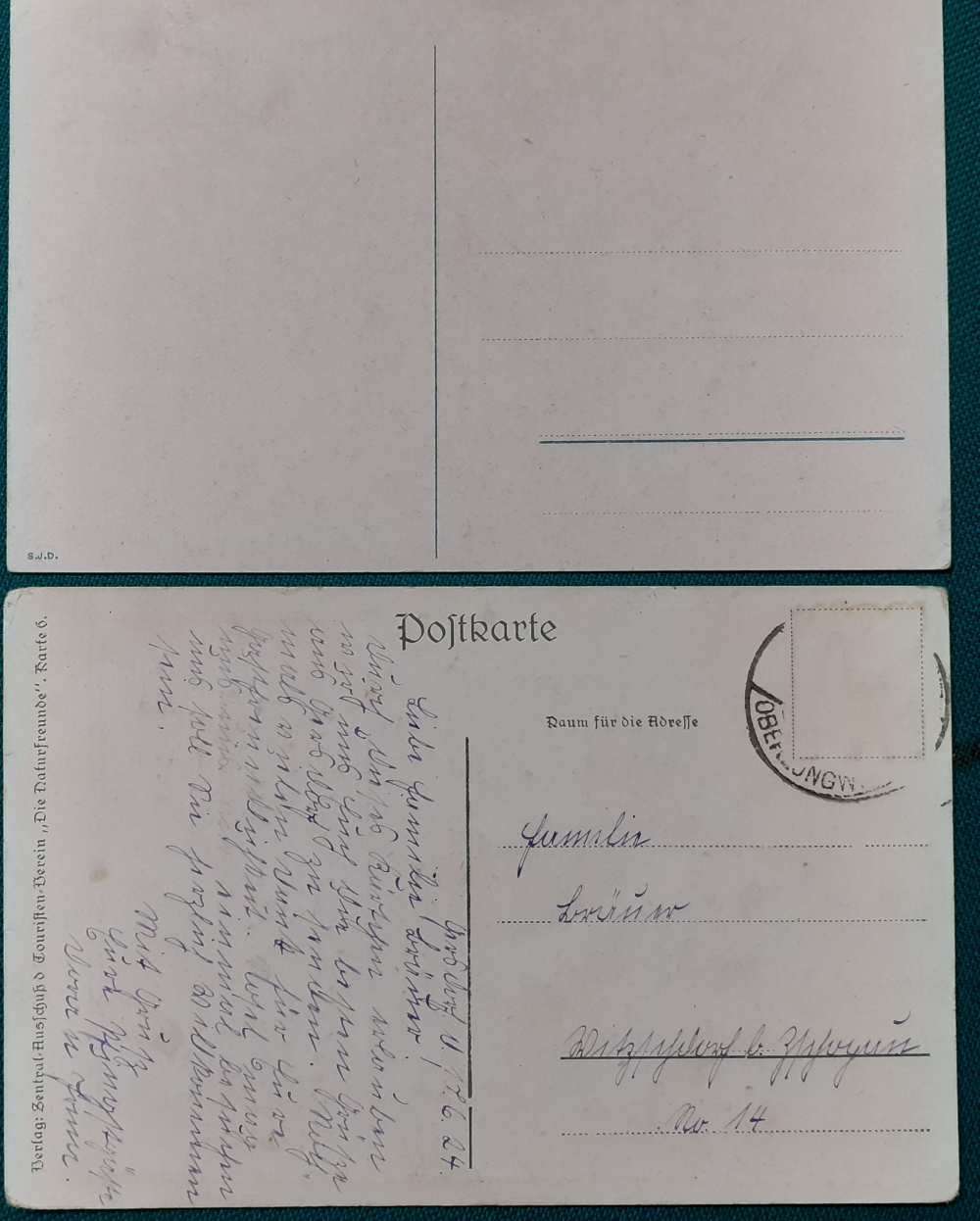 gelaufen 1924; Briefmarke leider entfernt; insgesamt befriedigender altersgemäßer