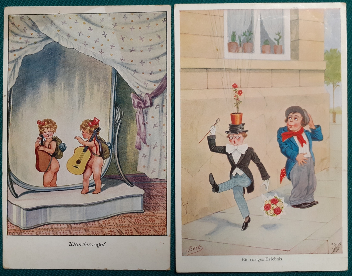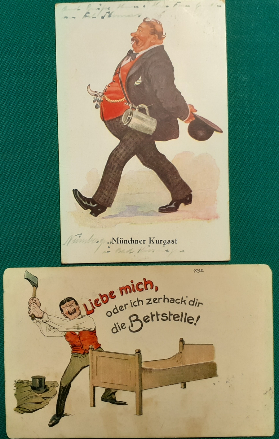 Primus-Postkarte der Reihe "Erlebnisse des Balduin Futsch auf Freiersfüßen";