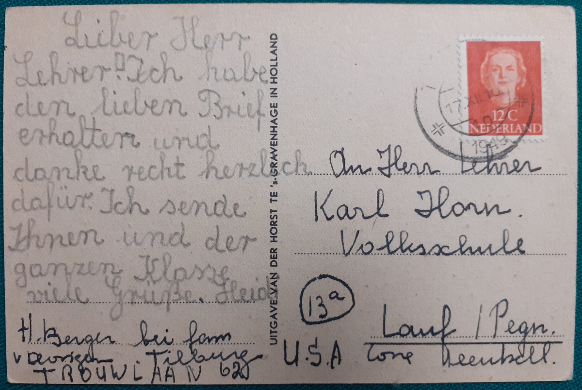 Karte Tilburg Heuvelstraat zugestellt am 17.12.1949 von Tilburg nach Lauf (Bayern); an den Kanten etwas bestoßen, noch recht guter altersgemäßer Zustand Preis 2 EURO |