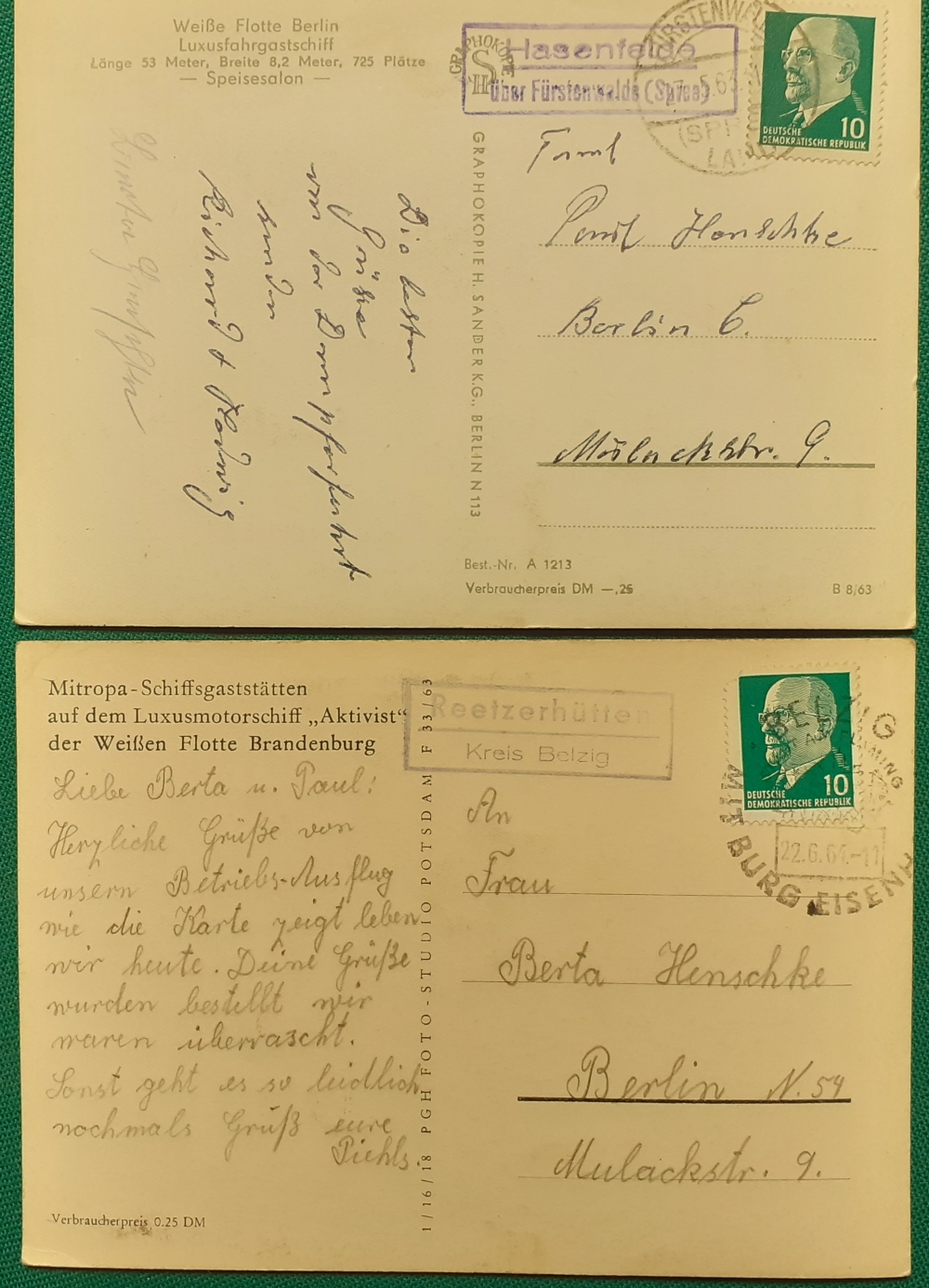 zugestellt am 27.5.1963 von Fürstenwalde nach Berlin; mit grüner 10 Pf.