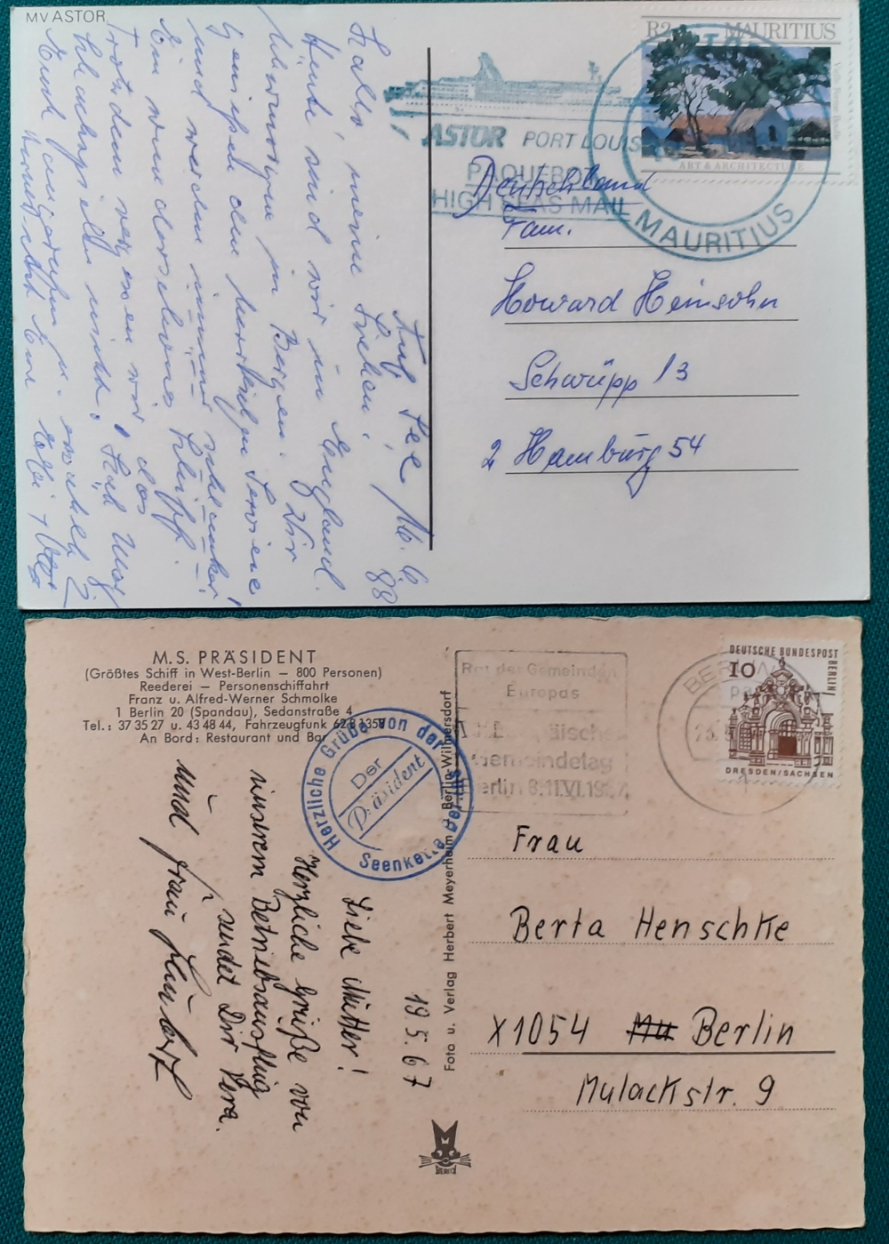 Sonderstempel "An Bord der MS Mecklenburg"; Karte an den