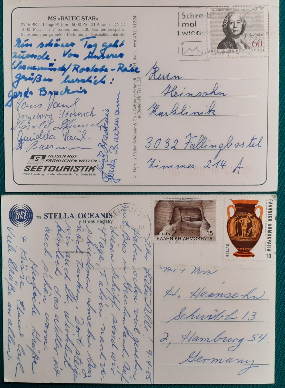 gelaufen im April 1985 von Bord nach Hamburg, 2 griech.