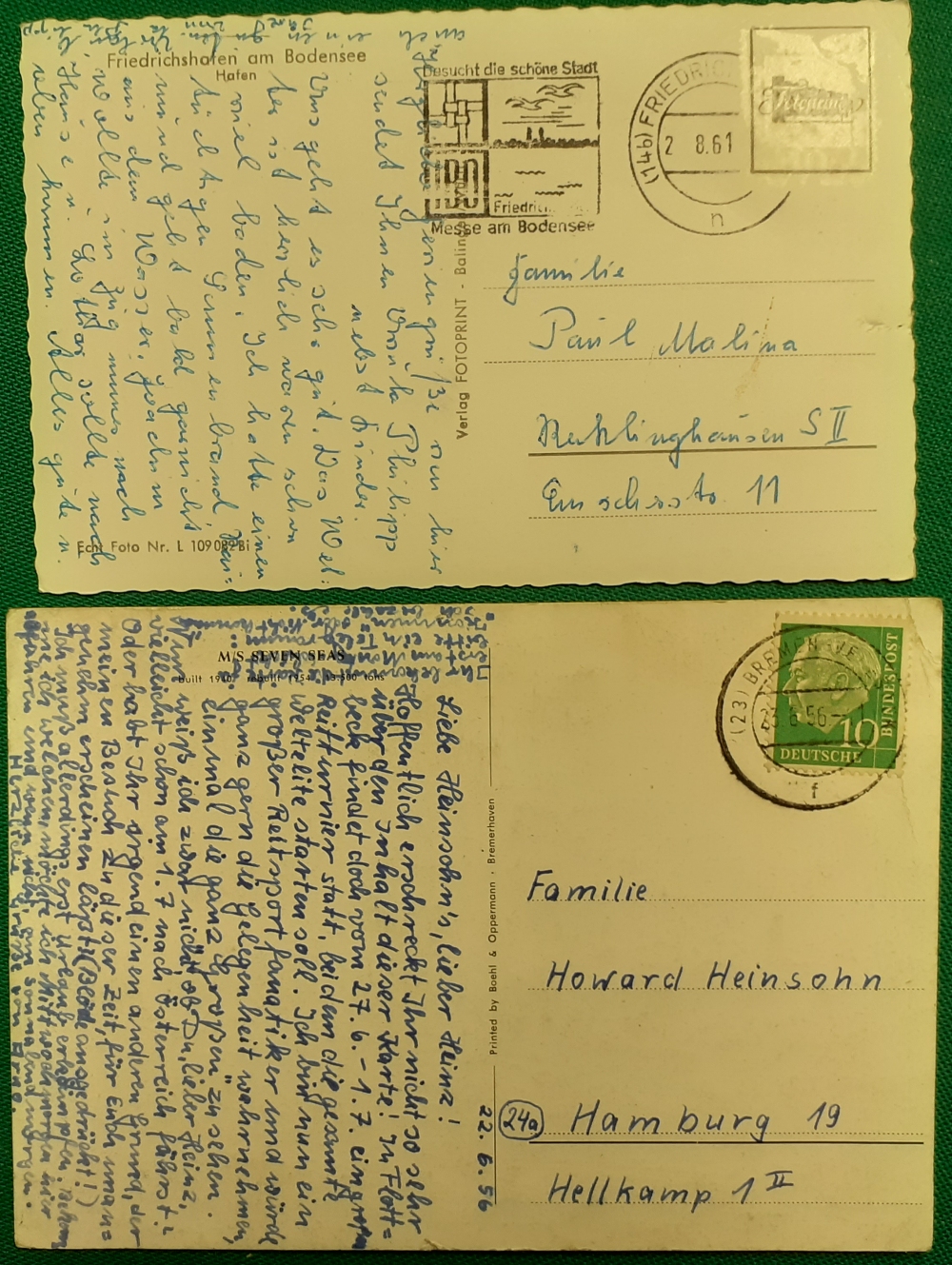 gelaufen von Bremen nach Hamburg am 23.6.1956 mit schönem Rundstempel; grüne