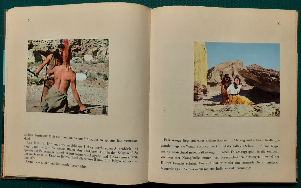 James Fenimore Cooper: nacherzählt von Albert Häusermann; im Gloria-Verlag, Spreitenbach (Schweiz), Ausgabe von 1967, Buch mit Rundum-Hochglanzeinband im Format 24,5 x 20,5 cm, 118 Seiten, mit ca. 100 komplett und sorgfältig eingeklebten farbigen Sammelbildern im Format 12 x 10 cm. Das Buch ist in gutem altersgemäßen Zustand. Die Bilder sind dem gleichnamigen Farbfilm entnommen der International Germania / Constantin; Regie: Harald Reinl; Darsteller: Dan Martin; Ricardo Rodriques; Anthony Steffens; Stelio Gandelli; Joachim Fuchsberger, Carl Lange; Kurt Grosskurth; Karin Dor; Marie France. Preis: 11 EURO Abenteuerbücher von James Fenimore Cooper siehe unter Kinderbücher - Ausgaben von Cooper |