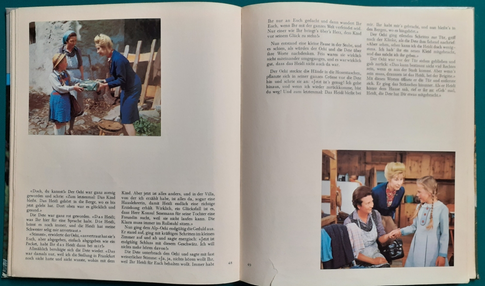 Heidi - Sammelalbum Herausgeber Gloria Verlag Spreitenbach, Schweiz, Ausgabe von 1967, nach dem gleichnamigen Film und Roman von Johanna Spyri. Das Buch hat 104 Seiten und ist mit 60 farbigen Sammelbildern im Format von jeweils 12 x 10 cm vollständig beklebt. Format des Buches: 25 x 21 cm, Pappeinband in Hochglanz. Zustand ist altersgemäß befriedigend: nichts locker oder beschmiert, nichts eingerissen; das Coverbild ist leicht fleckig. Die Bilder stammen aus dem Heidi-Film der Sascha GmbH Wien. Im Buch ist die Geschichte dem Drehbuch von Albert Häusermann nacherzählt. Die Hauptrollen spielen Eva Maria Singhammer, Gustav Knuth, Margot Trooger; Rudolf Prack, Margarete Haagen, Hans Thimig, Rudolf Vogel. Preis: 13 EURO Eine große Zahl von