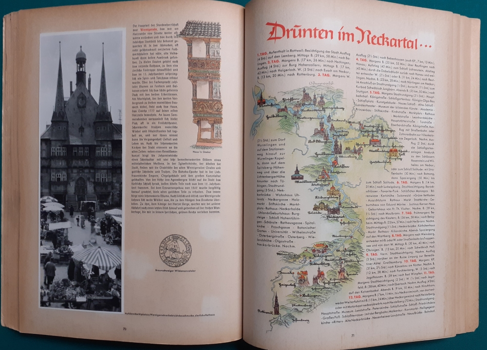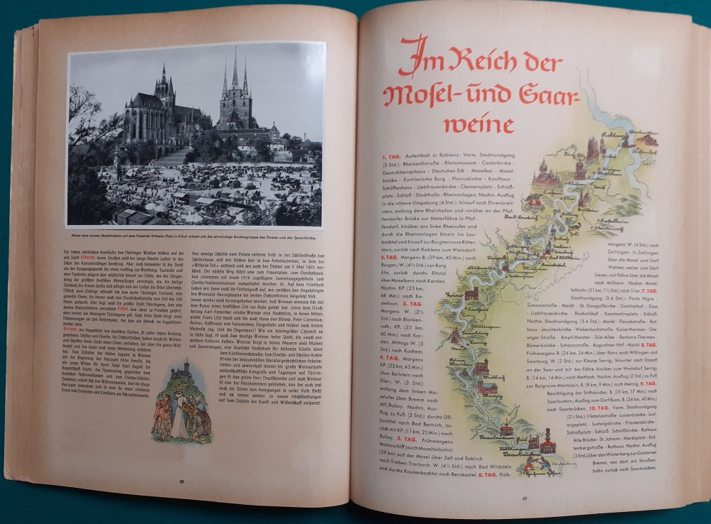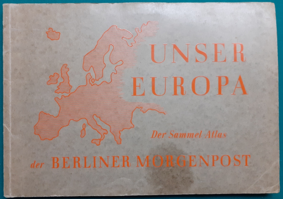 Unser Europa Hrsg. Berliner Morgenpost, Ausgabe von 1954, 50 Seiten im Hartpappeinband im Format 21 x 30 cm; mit 52 farbigen vollständig eingeklebten Sammelbildern (Kartenteile) versehen, Format der Sammelbilder ca. 19 x 13 cm, Einband vorn fleckig, sonst guter altersgemäßer Zustand Preis 13 EUR |